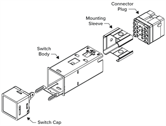 If you are installing or replacing only the cap, it is not necessary to uninstall an existing switch body. Special tools are available (cap extraction tool, connector plug extraction tool, and crimped wire insertion/extraction tool) that should be used for correct switch installation.