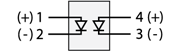 NEXSYS Diode Packs are manufactured with the polarity arranged from Anode (PIN 1, 4) to Cathode (PIN 2, 3), see Figure 2.6.1.1-A.